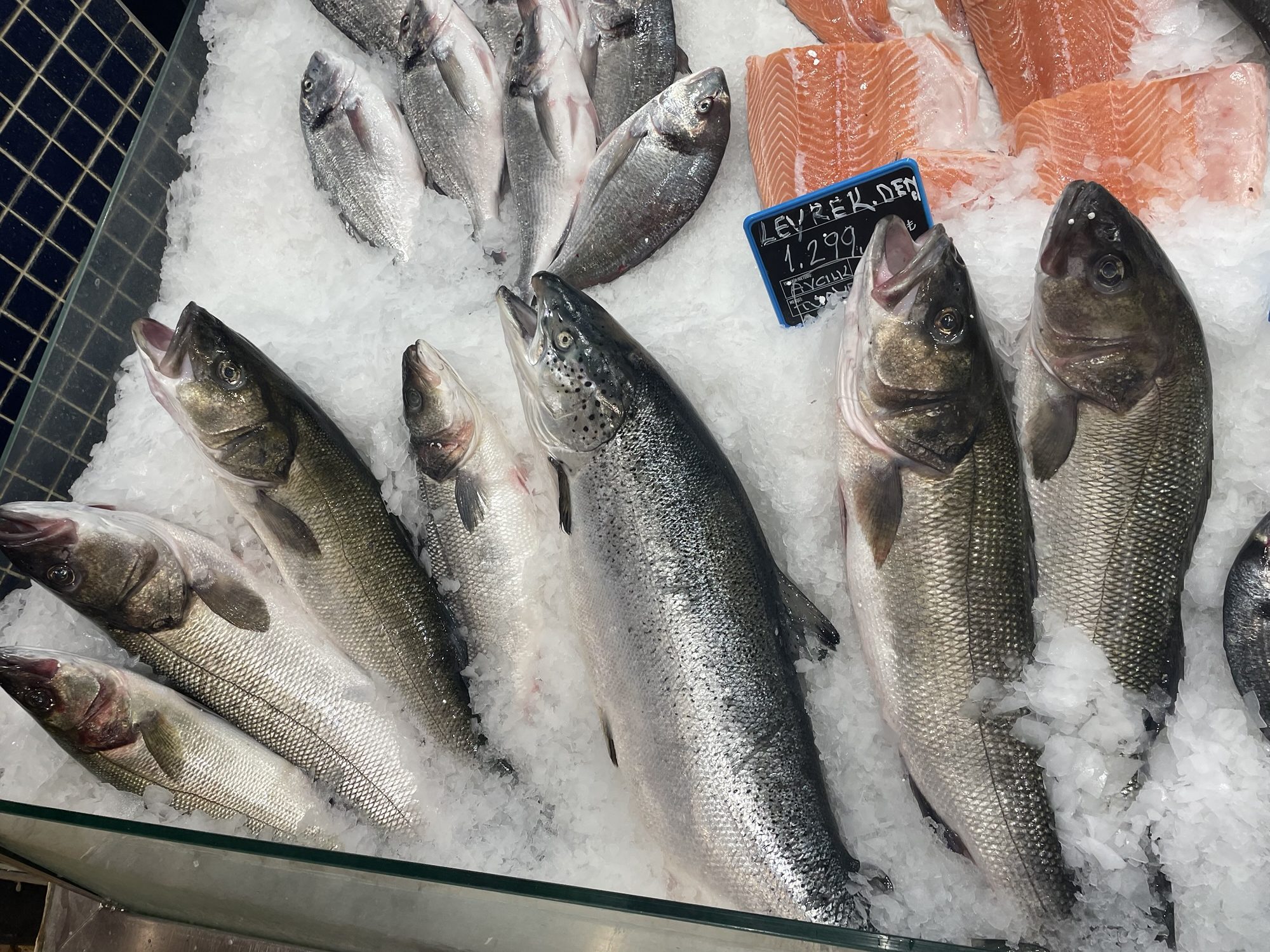 Buzun üstünde müşterilere sunulan Deniz levrekleri